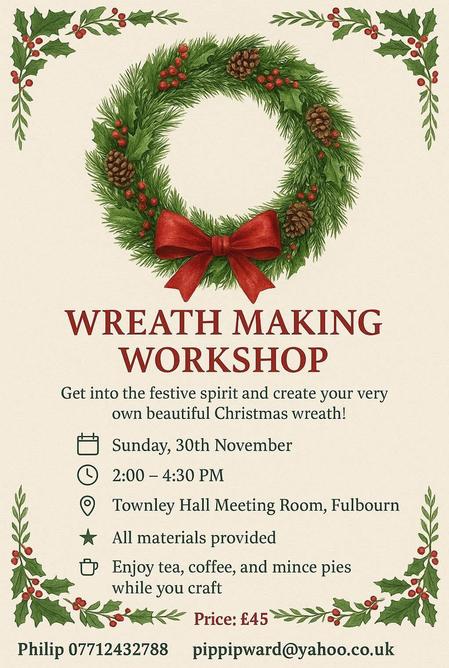 Saturday 29 November, 2.30 to 5.00pm in the Townley Hall, Fulbourn Centre